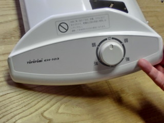 その1は、電気ストーブ。ヒーターが2本入っているけれど、弱にするとスイッチをどちらに回しても左側のヒーターしか稼働しない。