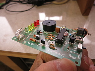 写真では見にくいけれどカラーLEDの外側に、赤外線LEDを追加してある。これは今までスピーカーを駆動していたPWM回路に接続している。
