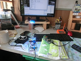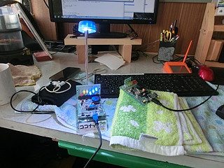 上の写真は1台を送信用、もう一台を受信用(当然PCも2台必要になる)として、両方のチェックをしているところ。