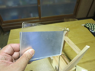 しかし、アルミ板ではばたついてしまうので結局ボール紙を背に入れて写真立てにした。