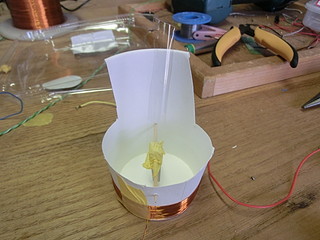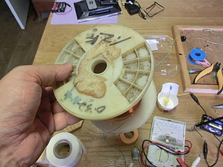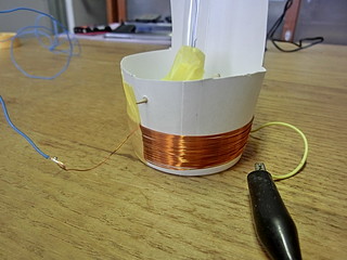 そこで、エナメル線を紙コップに50回巻いてみた。