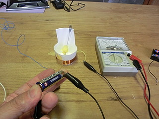 電池の本数によって、流れる電流がかわってくるので指針の振れもかわってくる。