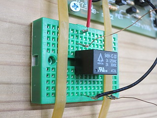 照明用の超高輝度LEDの出力端子(FETで増幅している端子)にリレーを接続して、スイッチのオンオフができるようにした。