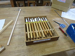 両刃のこと胴付きのこにそれぞれ一箱。生徒数が少ないので、これで全部収まった。