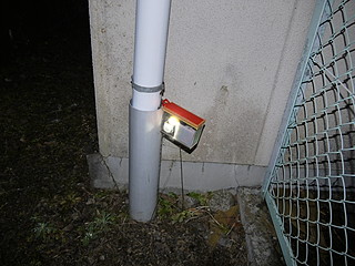 調整が終わり、夜通ると必ずライトが光る。この人感センサーは割と広めにセンシングしてくれるし、