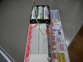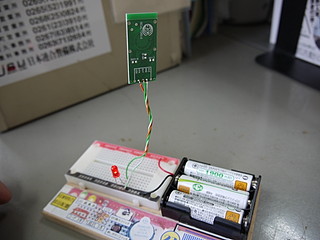 信号出力に、信号用LEDを直結してみた。入力があるとLEDが点灯する。