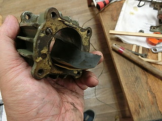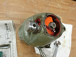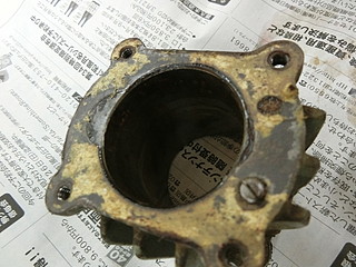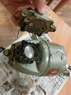 モータがまわらないので、シリンダーを分解したら古いオイルで固まっていた。