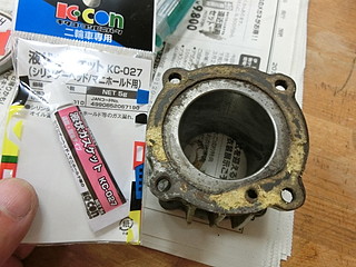 ガスケットも完全にダメになってしまったので、液体ガスケット(240円)を購入して組み付ける。