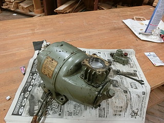 学校の技術室を整理していたら、50年以上前のコンプレッサーが見つかった。
