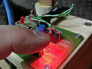 触っている間、下(裏)側で赤いLEDが点灯した。