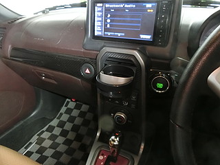 エアコン吹き出し口用のドリンクホルダを買ってみたものの、センターコンソールのパネルが見づらいのでやめた。
