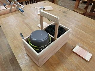 コンロと鍋が大きいので、それが入る大きさで箱を作る。