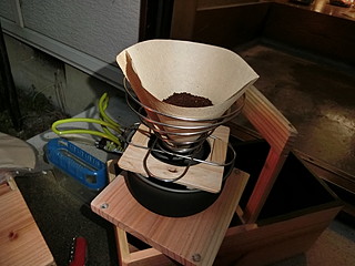 ドリッパーは100円ショップの折りたたみ式のもの。円錐形のペーパーフィルターを使う。