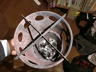 まずはお湯を沸かさなければ話しにならない。中国製のコンロ。2次燃焼するように空気の通り道が考えられた物。