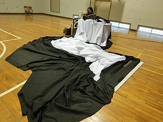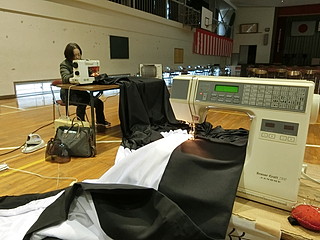 1日で終わらずに、次の土曜日も朝から作業してもらった。自分もミシンを持ち出してきて手伝った。