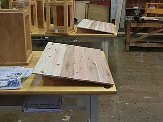 図書館司書の先生から、生徒たちにもっと新聞を読んでほしいので,新聞を広げておく台を作ってほしいと頼まれた。