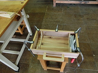蓋はおかもちスタイルにして、薄い合板を差し込む形にした。取っ手もつけたので、持ち運びと管理が楽になるかなと思う。