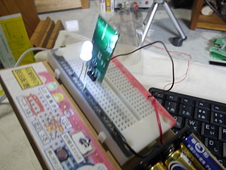 今まで赤外線リモコンの受光のみで使っていたAD変換ポートをいろいろなセンサに利用出来るようにした。(もう一つのAD変換ポートは光センサで固定)この基板で、赤外線入力、温度センサ、ドップラーセンサ(人センサ)、焦電型赤外線センサ、音センサ等々を利用することができる。