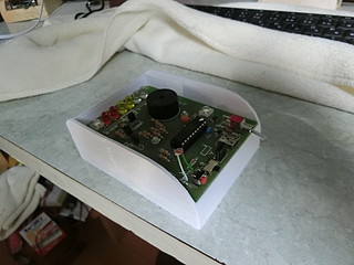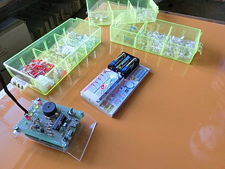 自分の学校は前期の授業だったので、基板が届いてすぐに製作に移った。素子は先に配ってブレッドボードで回路設計学習をした後で基板が届くのを待っていた。はんだ付けは5時間くらいで終わって、現在プログラムの学習をしている。