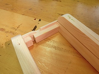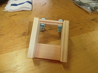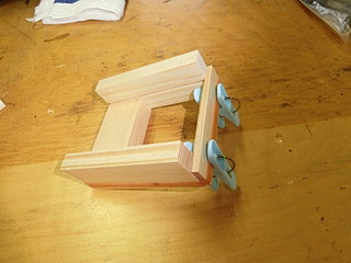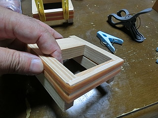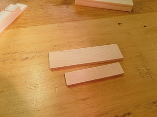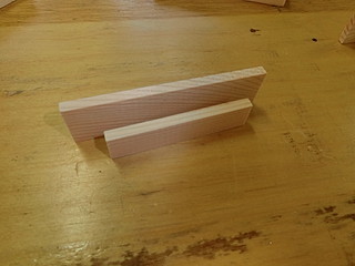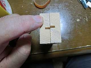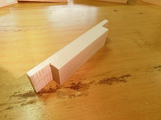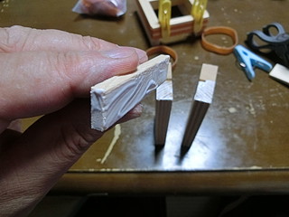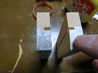 最初は機械加工で、形を考えて試作した。両脇を接着用に削って、コの字型になるようにした。