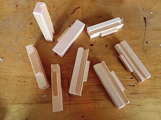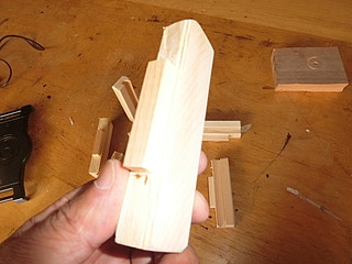 取っ手のようなスペースがあったので、そこを挟み込んで止められるように余り木を加工する。