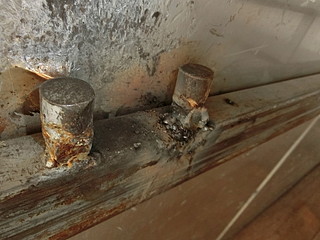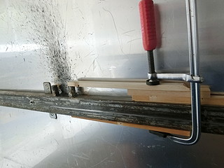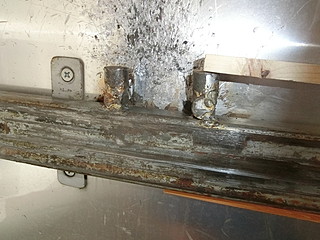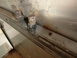 内部に運搬コンテナを載せた後、固定するのにパイプを渡しているが、そのストッパー部が曲がってしまったので修理した。