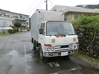 中学校で作っている給食を小学校へ運ぶためにパネルトラックを使っている。