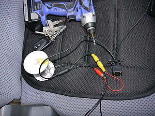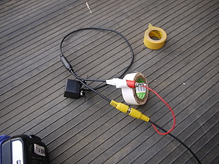 12Vを室内側から逆に流してカメラの電源に使うように接続。チェックするとスイッチオンで映像が切り替わることが確認出来た。