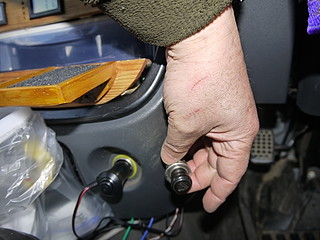 本来はバックギアに入った際にカメラがアクティブになるのだけれど、今回は任意の時に使いたいので、バックギア信号(バックランプの電源)を接続する線に、直接12Vを入力する。スイッチ付きのシガレット電源を使って取り出すことにした。