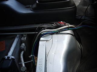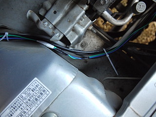 ケーブルはシート下のエンジンルーム経由で荷台に引き回す。