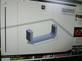 スライサソフトの画面と出力した部品。出力には2時間弱。設計は15分くらいかな。