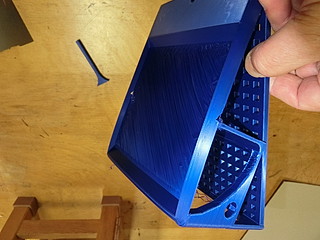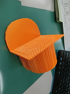 底がほとんど枠だけだったので、できあがりは反ってしまった。出力には24時間かかった。柱は一本折れた。