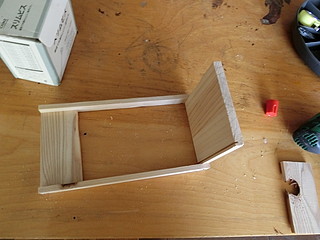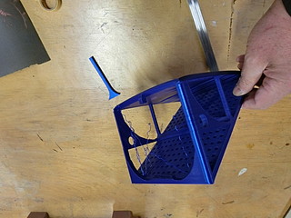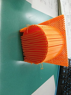 底と壁に沿うような斜めの網を作ることにして、木枠で型を作ってテスト後に設計した。