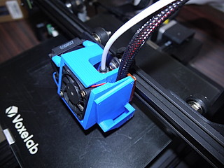 この取り付けもなかなか上手くいかずに何度も失敗したが、現在安定している。本来なら右側にもブロアファンを付けることで吐き出したフィラメントをより早く冷やすことができるが、現在はこれで運用している。