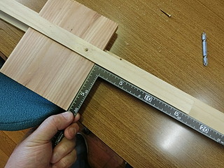 基準面は丸ノコで90°に切断してあげるために、ガイドを作る。いわゆるマイタゲージ。