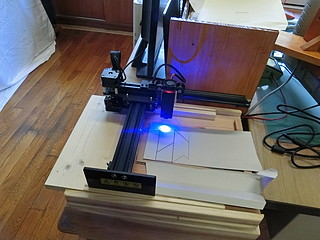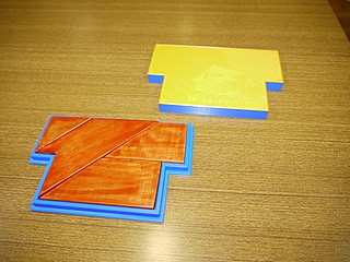 Tーパズルを作ることにしたので、以前の設計図を元に厚紙で型紙を作る。レーザー加工機で切り抜いて作った。