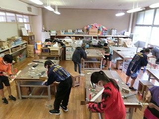 児童にとっては思い出のある教室ということで、壊してでた材料を使って工作をすることにした。