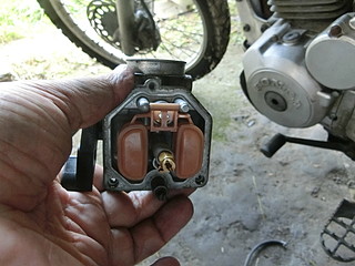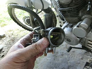 最初はアクセルワイヤーが錆びたためだと考えていたが、キャブレターが固まっていた。