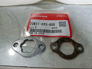 フロントスプロケットは、外れてしまうようになっていたので、純正品のフィキシングプレートを楽天にて購入。220円+送料350円。