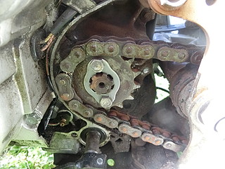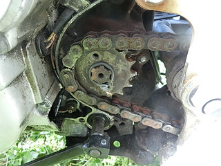 フロントスプロケットが外れて動かなくなっていたが、長く使わなかったのでアクセルが動かなくなっていた。