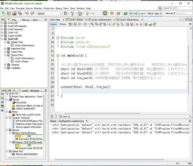 下は、そのメインプログラムを無料の開発環境であるマイクロチップ社のMPLAB IDEで表示させているところ。