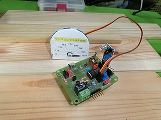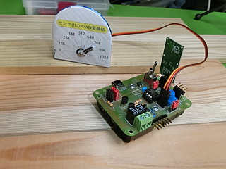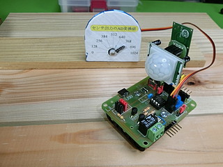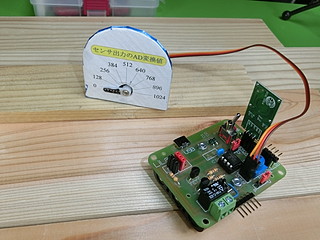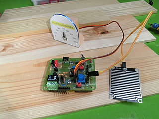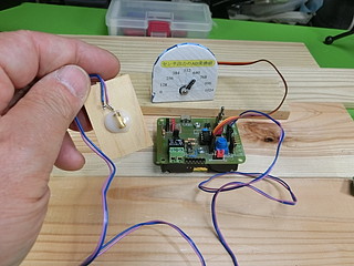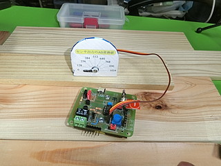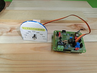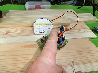今回のプロトタイプ、論理回路スイッチを一つにして、あいたポートをサーボモータに変更した。