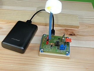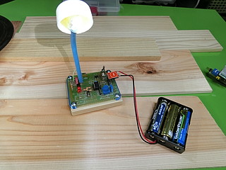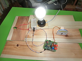 業者さんが各校をまわって見せるためのサンプルをいくつか作る。実験板のようなものと、スタンドライトのようなもの。スタンドライト型はサブセットで、しきい値を決めたらPICにプログラムを書き込んでから差し替えることになる。