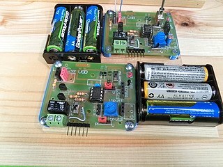 電池ボックスを基板の下にネジ止めできるようにしてあるが、外部電源ならUSBかピンヘッダで電池ボックスを外付けにするか。
