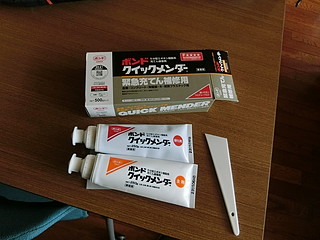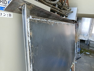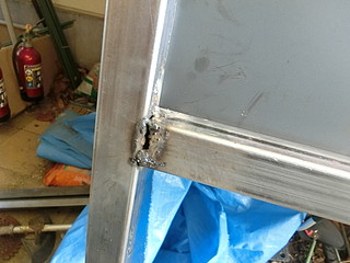久しぶりに溶接して、やっぱり穴を開けてしまった。この角パイプは1.6mm厚なので、まあやっちゃうかな。材料費は潤沢なので充填剤で補修する。