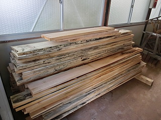 本来は製品にできないので、細かく砕いてウッドチップにするか燃やしてしまうしかないのだけれど、乾燥機で熱を加えれば寄生虫は死滅するので、近くの製材所にお願いする。