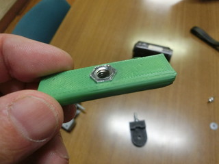 完成した状態。ナットをはさんだ緑色の板を締めて固定する。