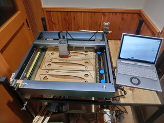 学校では博報賞を受賞して副賞のお金が入ったので、新しいレーザ加工機を購入しました。xtool D1pro 20wのLEDレーザなので、9mmの木材を切断することができます。 受賞記念として、春に危険木として伐採した玄関前のサワラの木を利用して、木べらを作りました。 解像度も高いので、切断だけでなく文字入れもきれいにできます。
