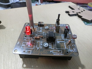 そこで、センサは光センサと人感知センサで固定にして、筐体もレーザ加工機でMDFをカットして作ることにしてみた。