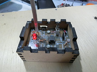 プログラム書き換えの回路やタクトスイッチなども省略して,ミニマムな構成でまず製作してみるというものに仕上がった。